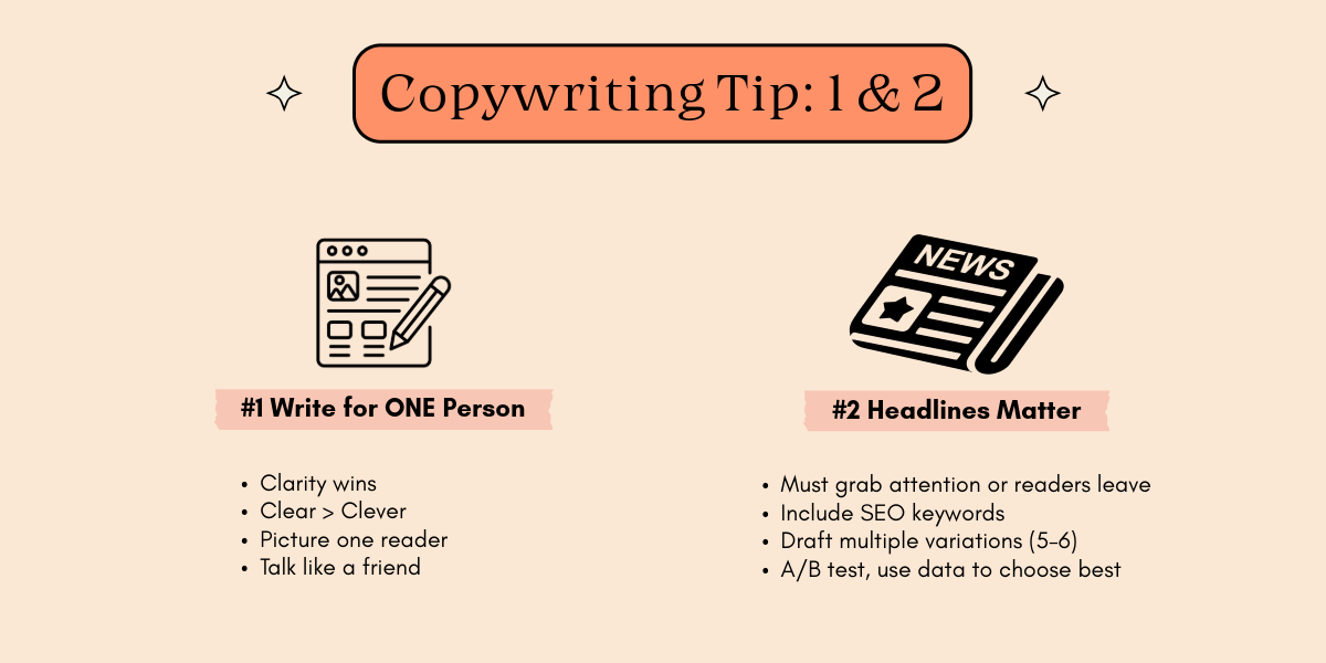 Bottom line: Write for that one person who needs what you’re offering, and don’t overcomplicate it with fancy words or unnecessary fluff. Clarity wins, always.